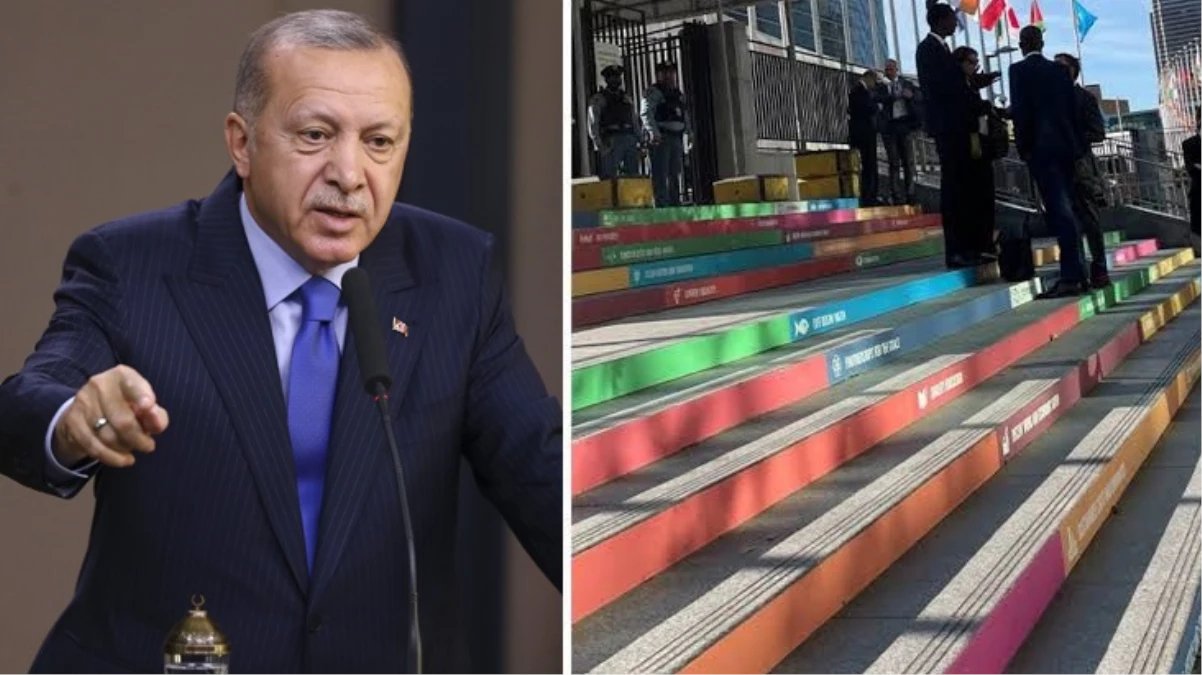 Cumhurbaşkanı Erdoğan: BM Genel Kurulu’na girerken basamaklar LGBT renkleri…