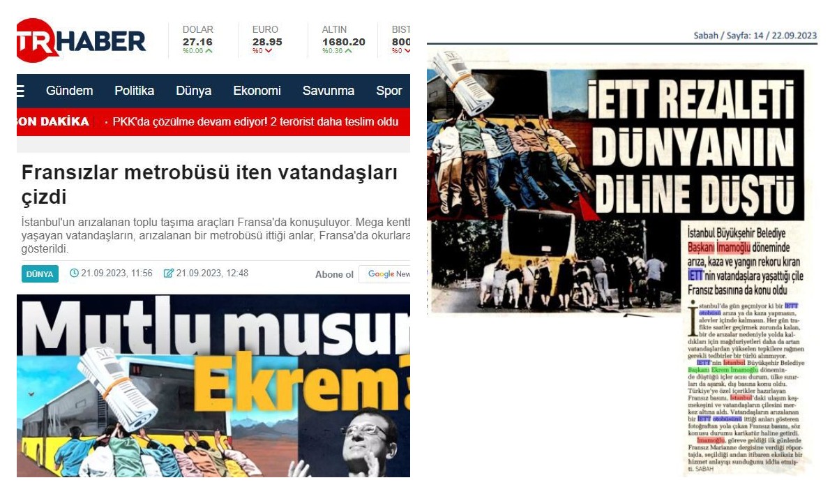 İBB’ye yönelik iftira kampanyasını sürdüren Sabah ve A Haber, medya tarihine bir yalanla daha geçti. Fransa’da aylık yayınlanan ‘Le Monde Diplomatique’ dergisindeki NATO-Türkiye ilişkisini konu eden makale, İstanbul’a ait bir yazıymış gibi sunuldu. Makalede kullanılan görseller arasında yer alan sanatçı İhsan Oturmak’ın çalışması, yazıda İETT ve İstanbul kelimesi dahi geçmemesine rağmen iftira fırsatı olarak kullanıldı. Oturmak’ın aynı temada benzer tasarımları olmasına rağmen, sanatçının bir eseri, yalan habere malzeme yapıldı.
