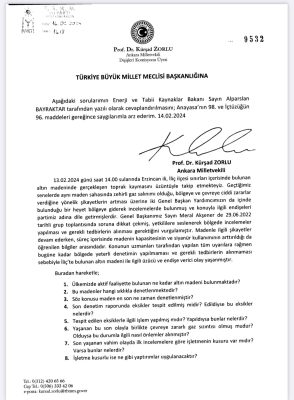 Bakan Bayraktar’ın verdiği cevaba göre söz konusu maden, Maden ve Petrol İşleri Genel Müdürlüğü (MAPEK) tarafından en son 05.08.2023 tarihinde mahallinde tetkik edilmiştir. Öyle anlaşılıyor ki herhangi bir kusur tespit edilmemiş!