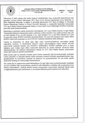 İYİ Parti Sözcüsü Kürşat Zorlu, konuyla ilgili Enerji ve Tabi Kaynaklar Bakanı Alparslan Bayraktar’a verdiği yazılı soru önergesine ise bakanlıktan yanıt geldi. Bakanlık, maden alanının 5 Ağustos 2023 tarihinde yapılan tetkiklerde, herhangi bir kusur tespit edilmediği yanıtını verdi.