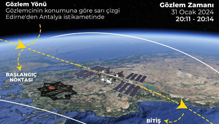 Türkiye'nin ilk astronotu Alper Gezeravcı'nın içinde bulunduğu Uluslararası Uzay İstasyonu, Türkiye'nin üzerinden geçecek.