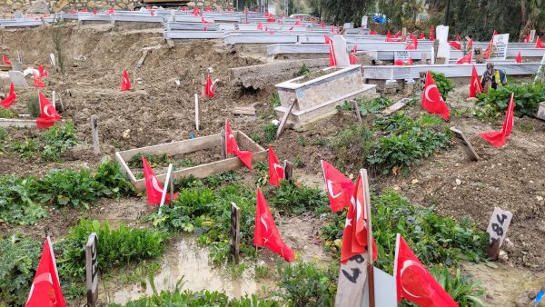 Gazeteci Burcu Özkaya Günaydın, sosyal medya hesabında yaptığı paylaşımda Hatay’daki, Antakya deprem mezarlığının son halini paylaştı. Günaydın, deprem mezarlığındaki mezarların heyelandan kaynaklı kaydığını belirtti.
