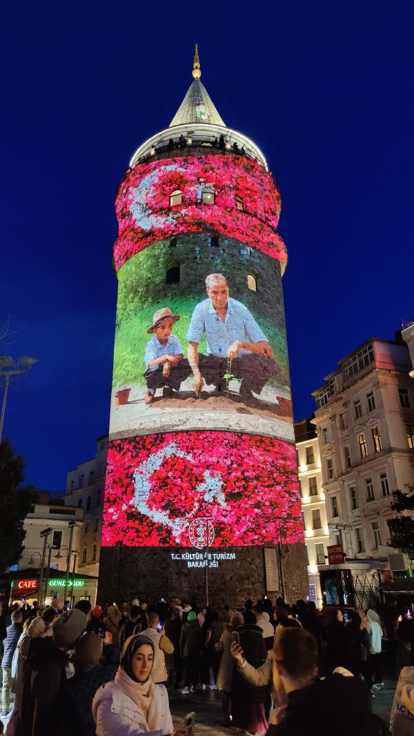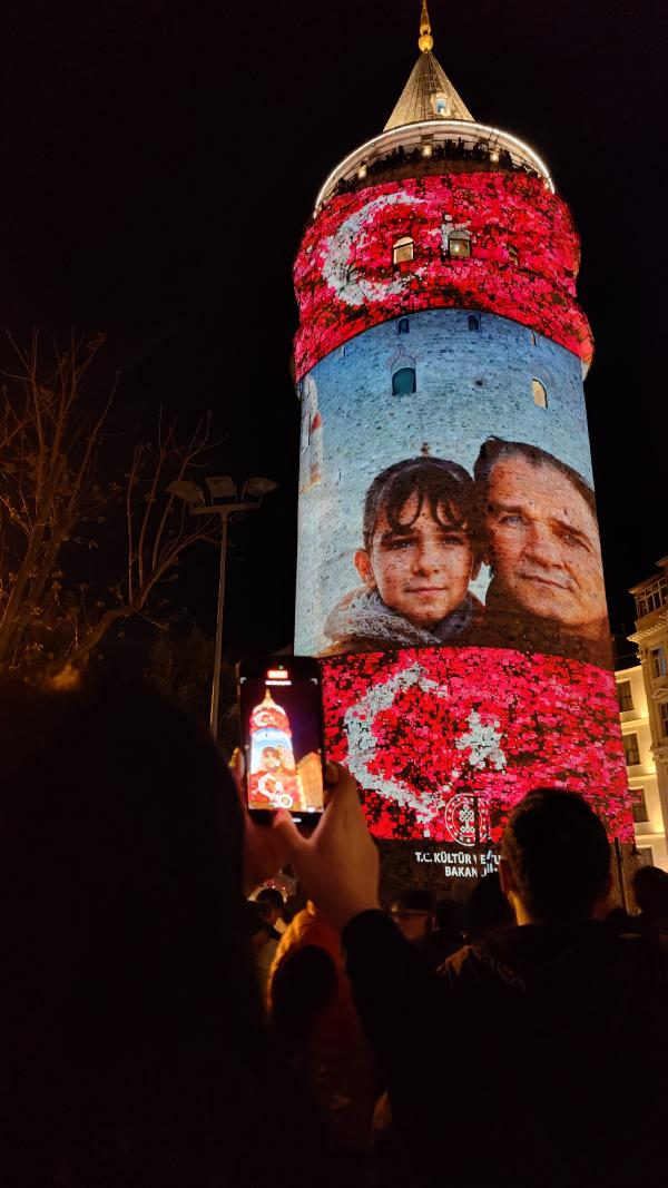 Kültür ve Turizm Bakanlığı tarafından düzenlenen "Bir Hayalin İnşası" Dijital Enstalasyon sergisi Beyoğlu'nun simgesi olan Galata Kulesi'nde İstanbullularla buluştu. Cumhuriyet Müzesinin arşivinde bulunan Cumhuriyetin Kurucusu Büyük Önder Mustafa Kemal Atatürk'e ait fotoğraflar Galata Kulesi'ne yansıtıldı. Yapay zeka ile oluşturulan Atatürk heykeli "Dünyada çocuklara bayram armağan eden tek lider Atatürk'ü saygıyla anıyoruz" notuyla paylaşıldı. Gösteride, Mustafa Kemal Atatürk'ün çocuklarla olan fotoğrafları yoğun ilgi gördü.