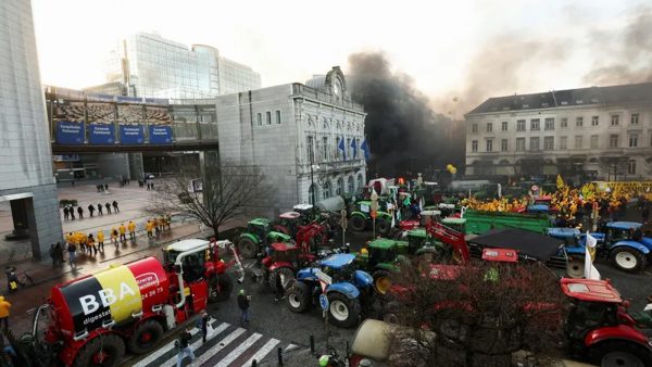 AB Parlamentosu'nun önündeki meydana traktörlerle gelen çiftçiler ateşler yakıp havai fişek patlattı. Kolluk kuvvetleri, yaklaşık 1000 traktörün yolları kapattığını duyururken çok sayıda çevik kuvvet ekibi de bölgeye gönderildi.
