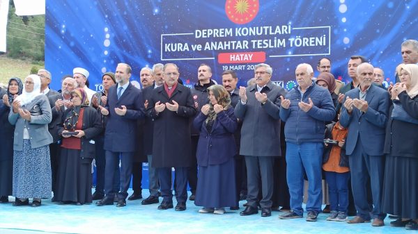Özhaseki daha sonra İskenderun ilçesinde Cebike TOKİ Afet Konutları'nın kura çekim törenine katıldı ve hak sahiplerine anahtarlarını teslim etti.