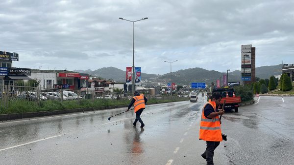 Sabah saatlerinde ise aralıklarla etkili olan sağanak nedeniyle vatandaşlar zor anlar yaşadı. Cadde ve sokaklar göle dönerken, derelerden akan su, denizin rengini kahverengiye çevirdi. Yağış nedeniyle yollara savrulan çakıl taşları karayolları ekipleri tarafından temizlendi.