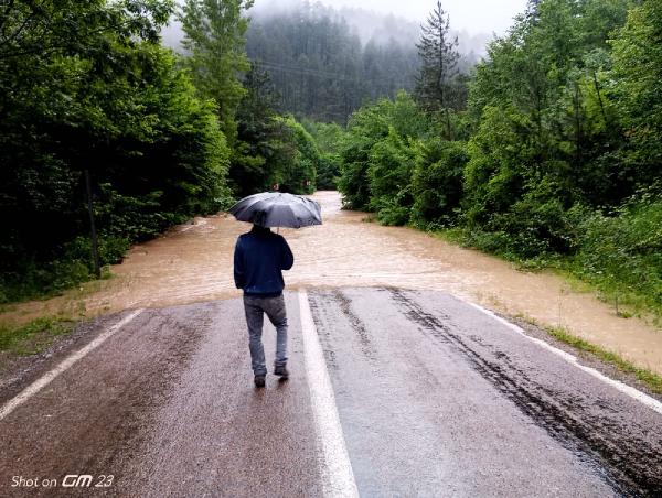 Bolu'da etkili olan sağanak nedeniyle Mengen ilçesinde dereler taştı. Taşan dereler sebebiyle suyla kaplanan Mengen-Pazarköy karayolunun 14'üncü kilometresi trafiğe kapatıldı. Bolu Valisi Erkan Kılıç da bölgede incelemelerde bulundu. (DHA)