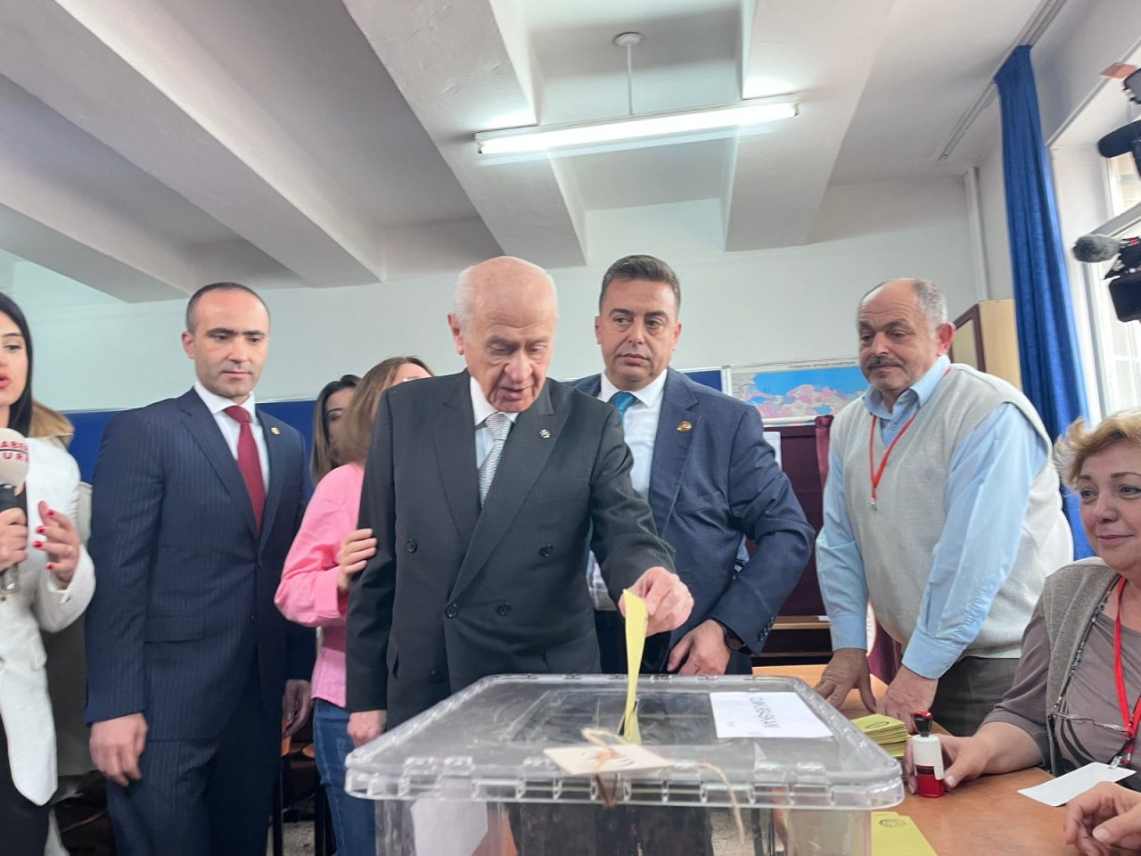 MHP Genel Başkanı Devlet Bahçeli Ankara Anıttepe Ortaokulu'nda oyunu kullandı.