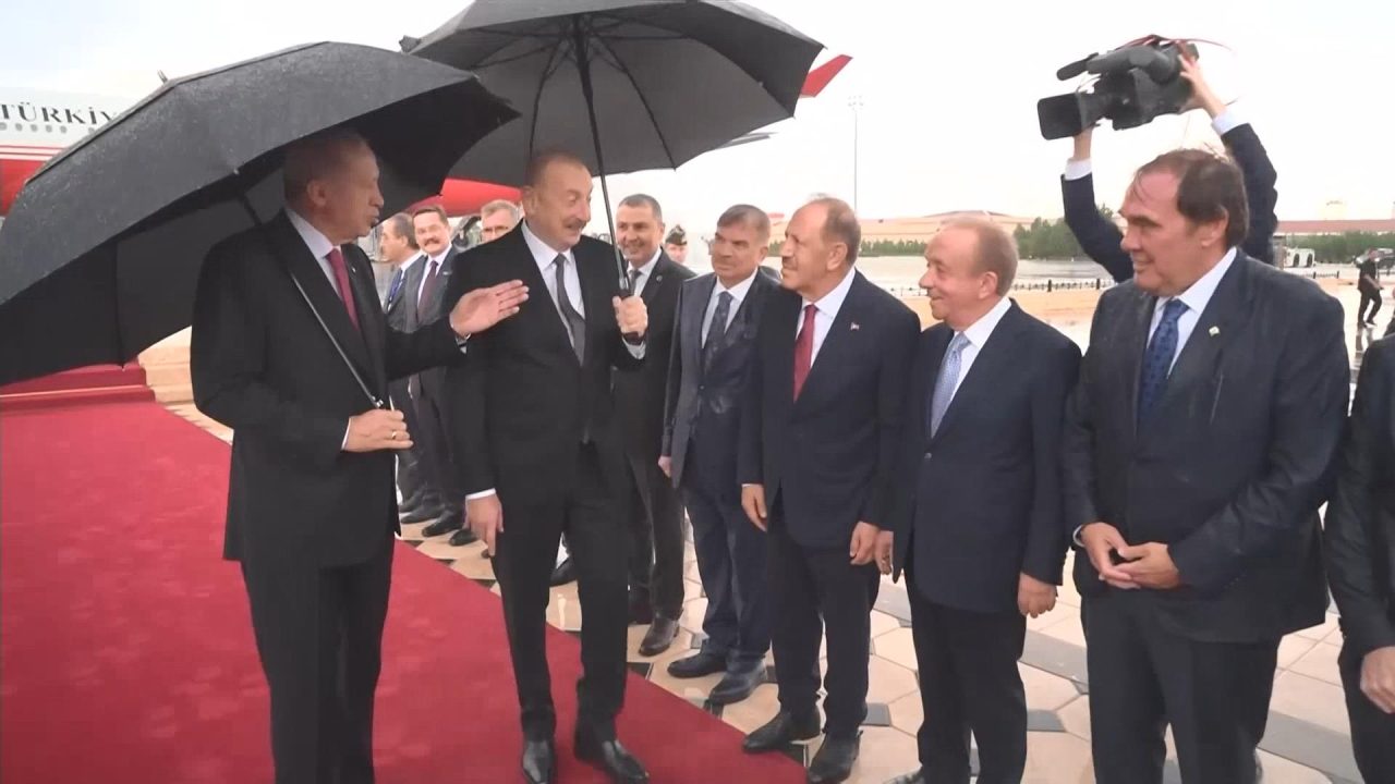 Cumhurbaşkanı Erdoğan, Azerbaycan Cumhurbaşkanı Aliyev tarafından Nahçıvan Havalimanı'nda karşılandı. Cumhurbaşkanı Erdoğan'ı, Nahçıvan Havalimanı'nda; Azerbaycan Cumhurbaşkanı Aliyev'in yanı sıra Azerbaycan Cumhurbaşkanı Özel Temsilcisi Fuad Necefli, Nahçıvan Yüksek Meclisi Başkan Yardımcısı Anar İbrahimov, Nahçıvan Valisi Mirsenani Seyidov, Azerbaycan'ın Ankara Büyükelçisi Reşad Memmedov, Türkiye'nin Bakü Büyükelçisi Cahit Bağcı ve Türkiye'nin Nahçıvan Başkonsolosu Asip Kaya ile ilgili yetkililer karşıladı. Demirören Holding Yönetim Kurulu Başkanı Yıldırım Demirören de Cumhurbaşkanı Erdoğan’ı karşılayanlar arasındaydı.