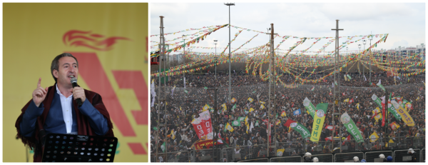DEM Parti Eş Genel Başkanı Bakırhan Diyarbakır Nevruz kutlamasında konuştu. Bakırhan, "Savaşla, statüsüzlükle, cezaevlerine koyarak bu halkı yolundan çeviremezsiniz. İşte meydan, işte halkın ortaya koyduğu irade görüyor ve duyuyorsanız buradadır. Onun için sizi savaş yerine Türk ve Kürt ittifakını demokratik bir şekilde güncellemeye davet ediyoruz" diyerek seslendi.