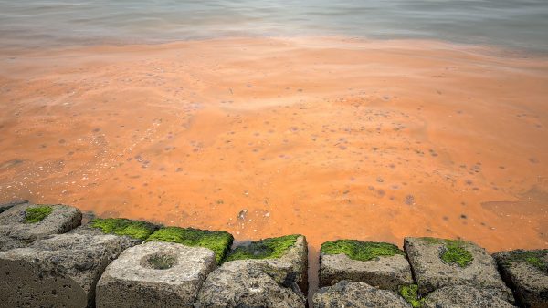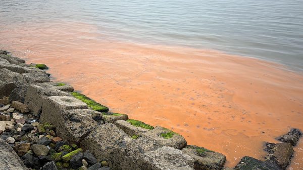 Süleymanpaşa sahilinin bazı kesimleri ile balıkçı barınağı yer yer turuncuya boyandı.