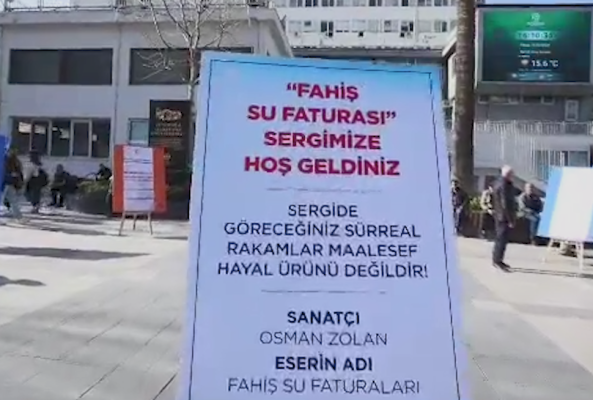 Serginin açılışında CHP Adayı Bülent Nuri Çavuşoğlu, "Eserin sahibi 'OSMAN ZOLAN', eserin adı 'FAHİŞ SU FATURALARI" dedi.