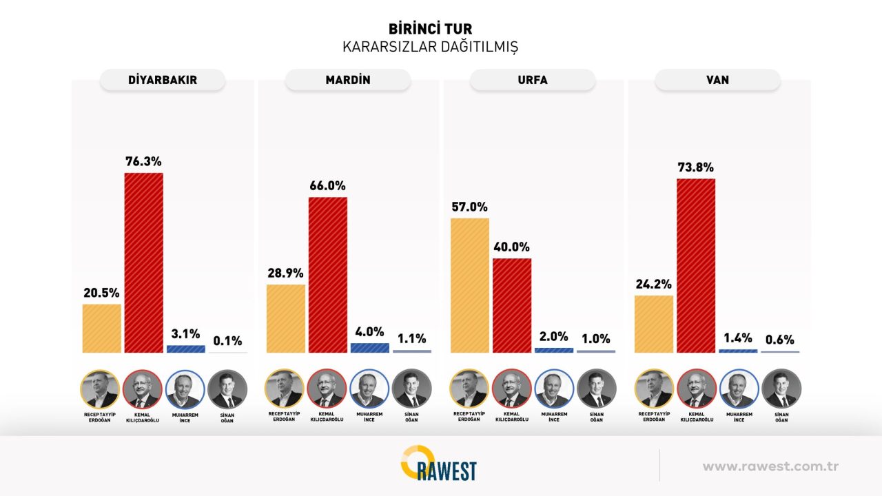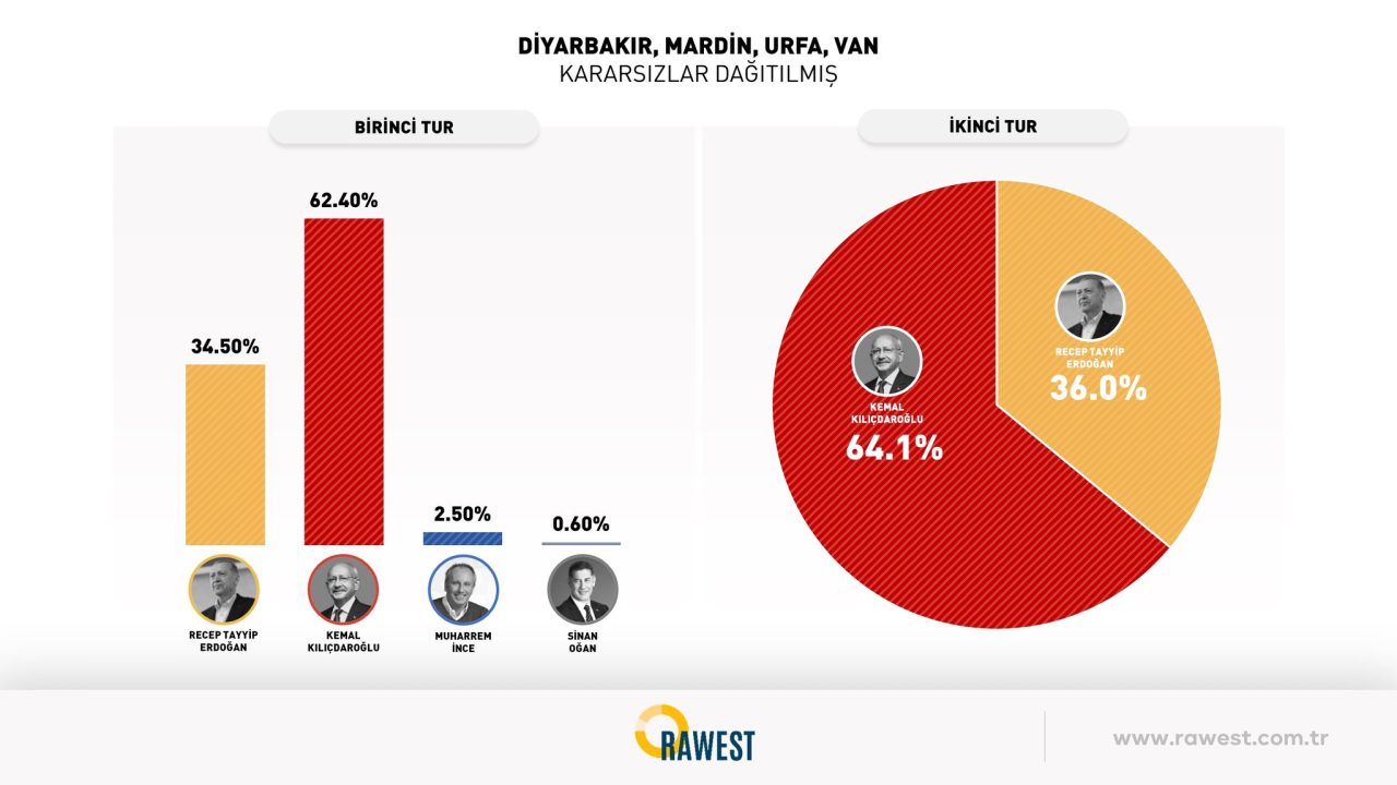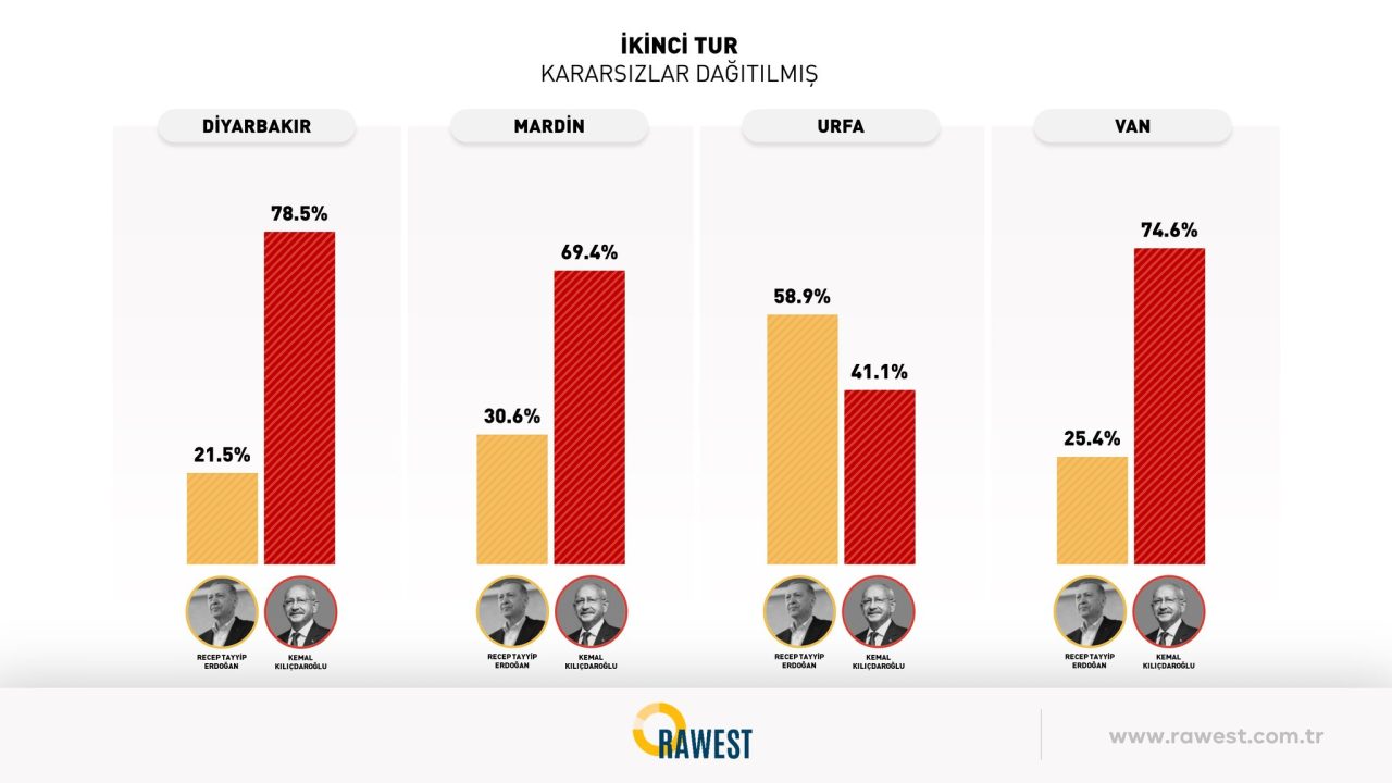 Rawest Araştırma, doğu ve güneydoğu illerinde yaptığı seçim anketi sonuçlarını açıkladı.