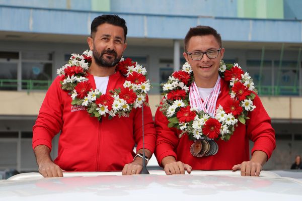 Trisome Oyunları'nda uzun atlamada dünya rekoru kıran down sendromlu Emirhan Akçakoca, memleketi Tekirdağ'da törenle karşılandı.