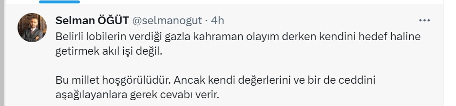 "Belirli lobilerin verdiği gazla kahraman olayım derken kendini hedef haline getirmek akıl işi değil.
