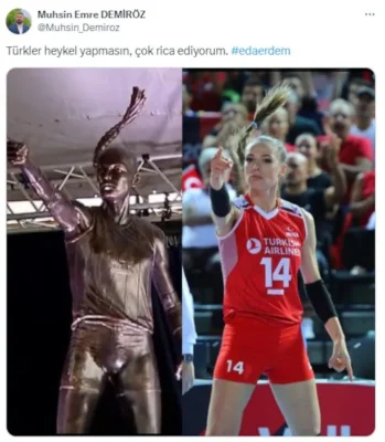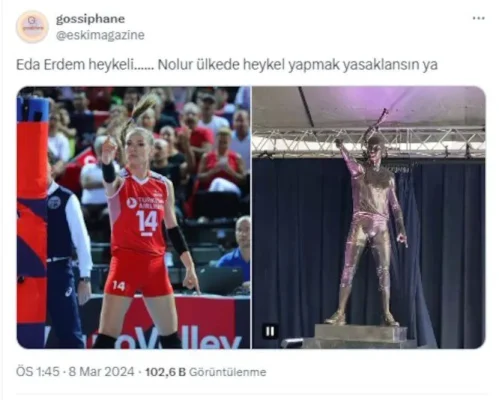Fenerbahçeli voleybolcu Eda Erdem'in heykeli, sosyal medyada gündem oldu. Sosyal medya kullanıcıları, Eda Erdem'in heykelini erkek heykeline benzetti.
