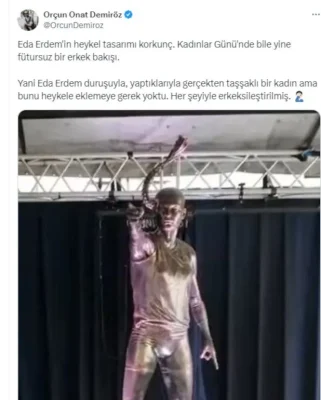Eda Erdem heykeline gelen eleştirilerden bazıları şöyle:
