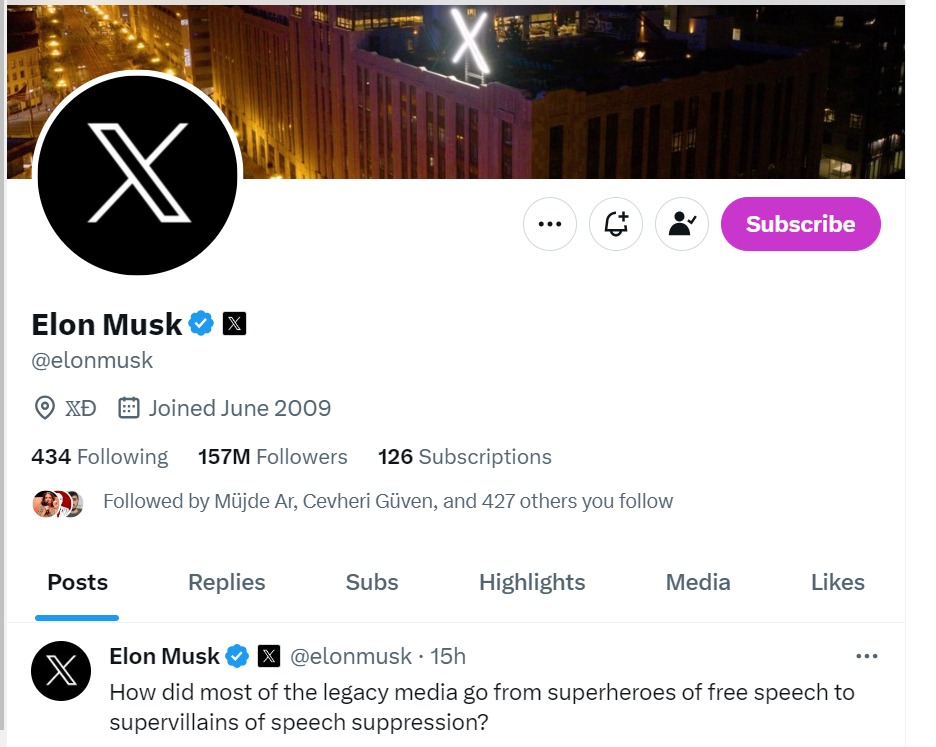 Musk son paylaşımında “How did most of the legacy media go from superheroes of free speech to supervillains of speech suppression? / Eski medyanın çoğu nasıl oldu da ifade özgürlüğünün süper kahramanlarından ifade baskısının süper kötülerine dönüştü?” diye yazdı.
