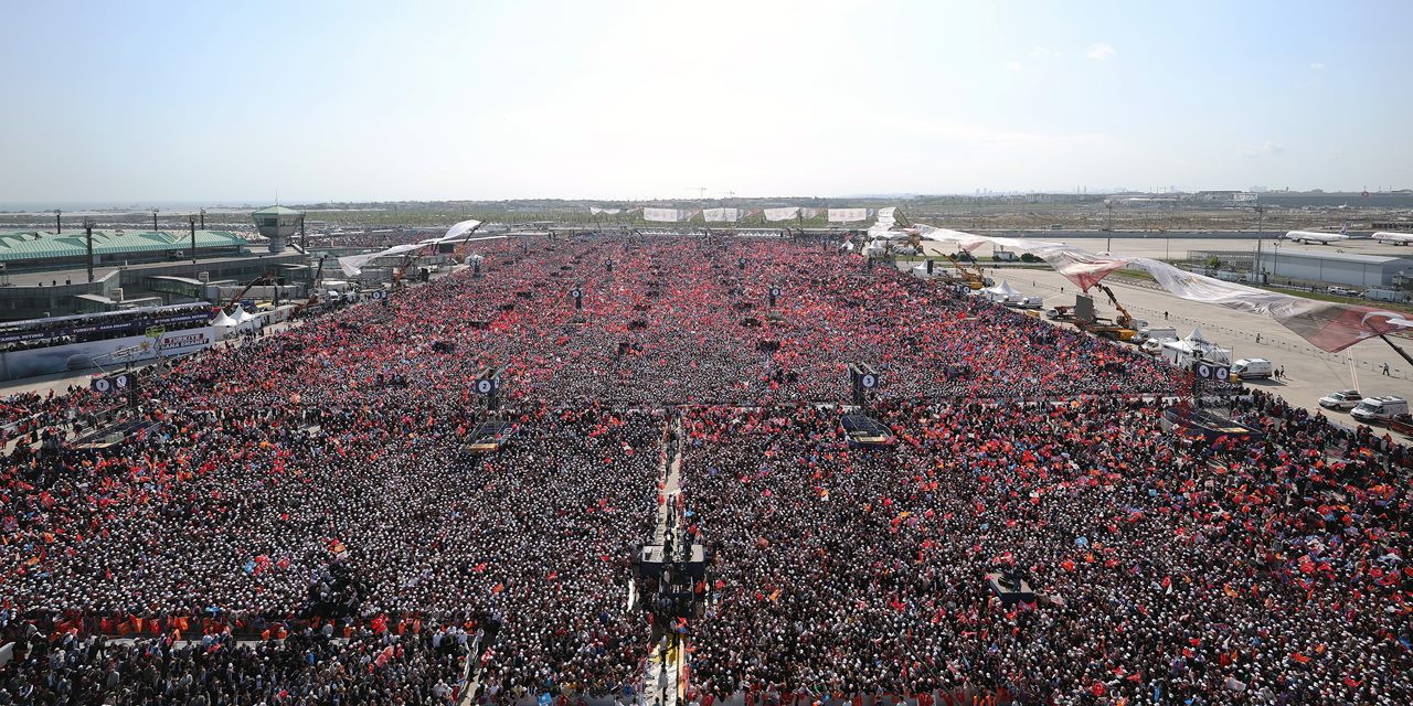 Hani o Avrupa'nın dergileri var ya, onlar şimdi burayı izliyorlar. Acaba Atatürk Havalimanı'nda ne oluyor diye? İşte burada. Cevabı siz vereceksiniz, siz. Bu devletin üzerinde karanlık hesaplar yapanların yüzü düşsün. Öyle bir ses verin ki sandıktan çıkacak sonucun sesi olsun.