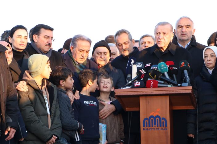 Cumhurbaşkanı Recep Tayyip Erdoğan, "Bizim inancımıza göre bu tür afetlerde vefat edenlerin makamı şehitliktir... Bu millet mağdura el uzatmadan yapamaz. Her şeyden önce Müslümanız" dedi."İSTEDİĞİMİZ HIZA ULAŞAMADIK"Adıyaman...