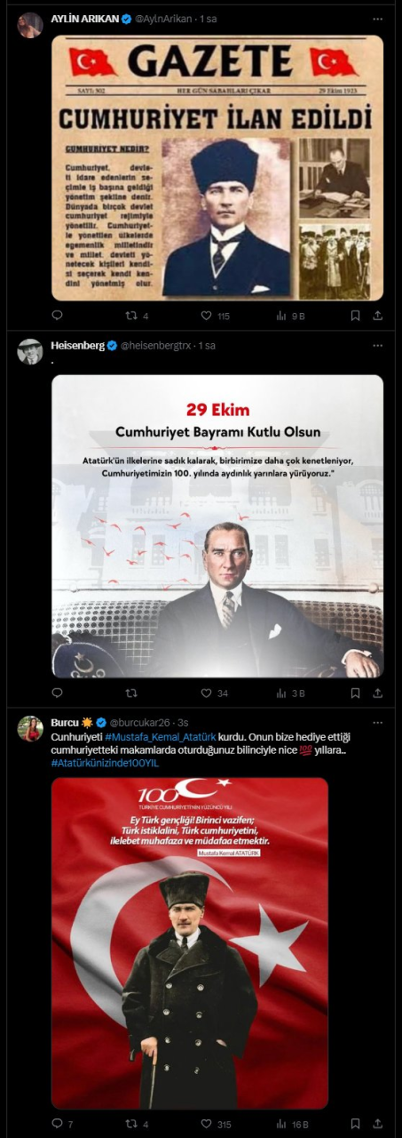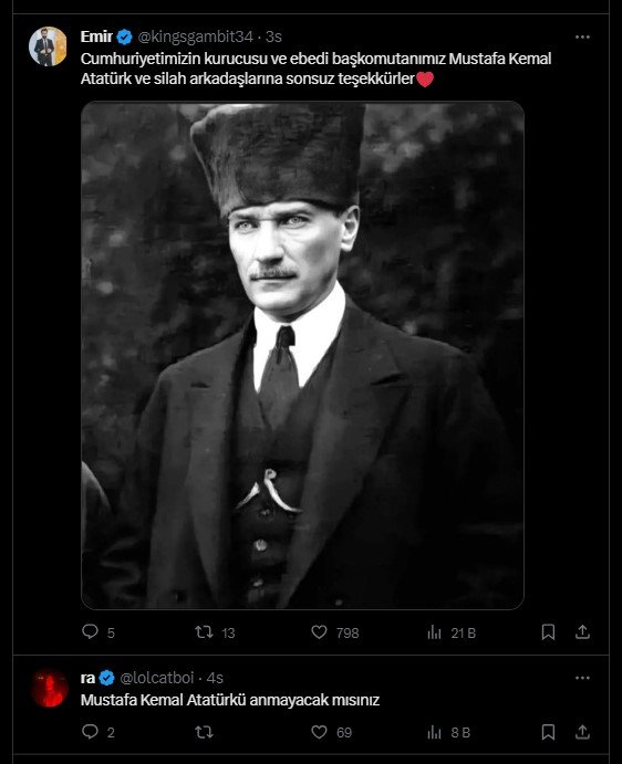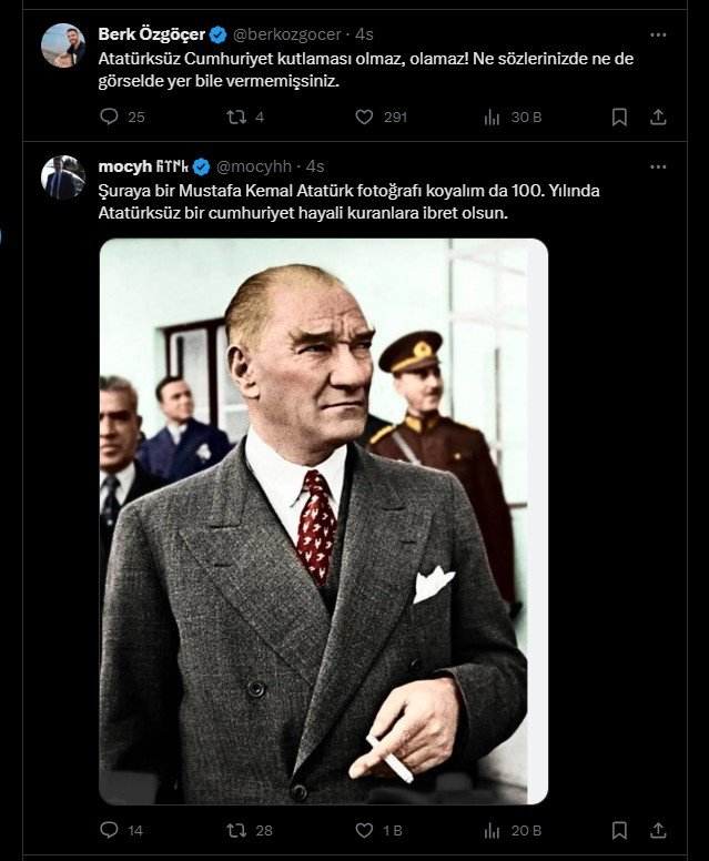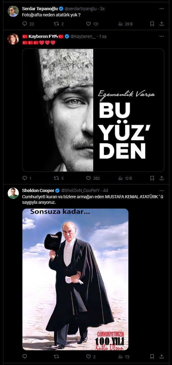 Çok sayıda kullanıcı söz konusu paylaşımın altına Atatürk fotoğrafı kullanarak çok sayıda yorum yazdı: