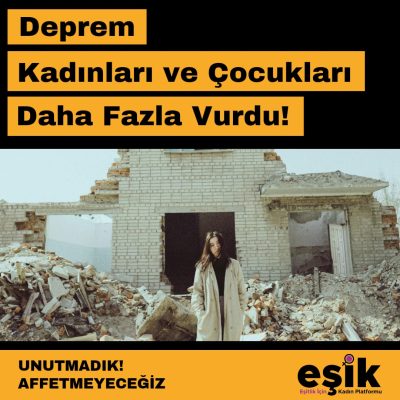 Kadının bakım emeği toplumsallaşmadıkça, sağlıklı barınma, beslenme, istihdam olanağı yaratılmadıkça, kadına yönelik şiddetle mücadele mekanizmaları afet koşulları dikkate alınarak düzenlenmedikçe ve eşitlik politikaları uygulanmadıkça kadınların ve çocukların yaşamı daha da katmerlenerek zorlaşıyor.
