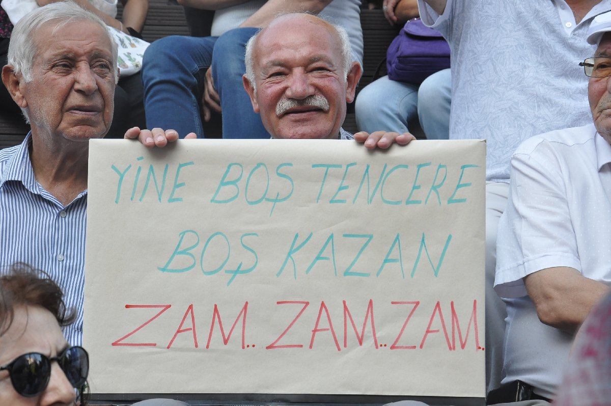 Türkiye Cumhuriyeti vatandaşımız haksız bir şekilde sefalet içinde, yokluk içinde, el avuç ovuştururken bir şişe suyu bile alamazken hiç kimse unutmasın ki Türkiye Cumhuriyeti vatandaşı geçmişte kendi küllerinden yeniden doğdu. Bundan sonra yeniden doğacağız, hakkımızı yedirmeyeceğiz. Emekliler hak ettiği zammı bir şekilde çözecek. Öyle ya da böyle. Biz emekliler Eskişehir'den yürüdük mü tüm Türkiye ayağa kalkar. Krizi yaratan bedelini ödesin. Bu eylem Türkiye'ye örnek olsun.”