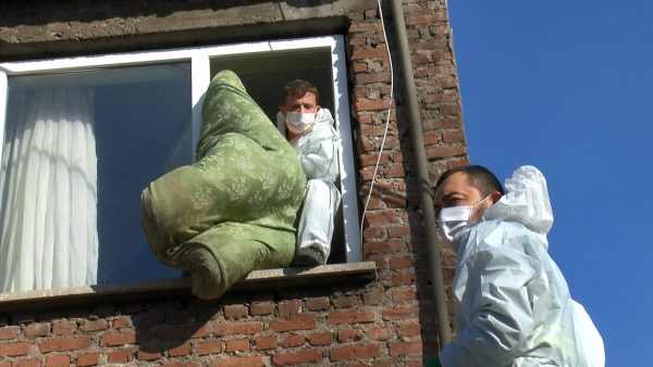 Bu sırada ekipleri engellemek isteyen Merda Aydınoğlu, "Benim kızımın çeyizlerini, tencereleri götürüyorsunuz. Olmaz böyle. Ne varsa atıyorsunuz, istemiyorum. Evimde eşya bırakmadınız, zorla benim evime giremezsiniz. Kendi eskilerimi giyerim, başkalarının kıyafetlerini ne yapayım. Her şeyimi alıyorsunuz, eşyalarımı kamyondan çıkarın" diyerek tepki gösterdi. Aydınoğlu, daha sonra kamyonun peşinden gitti.