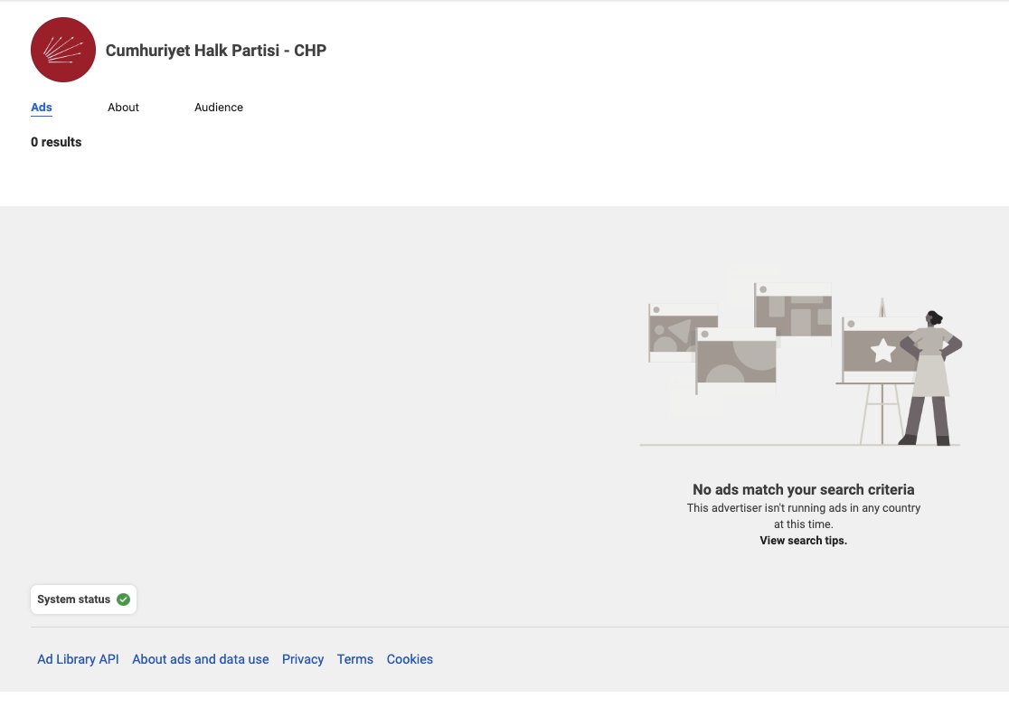 Nerede ise hiç Facebook-Instagram reklamı açmayan parti ve liderler: İyi Parti (100 TL) - Meral Akşener (Son reklam Mart'ta) Gelecek Partisi - Ahmet Davutoğlu Yahu hiç mi desteklemek istemediniz?