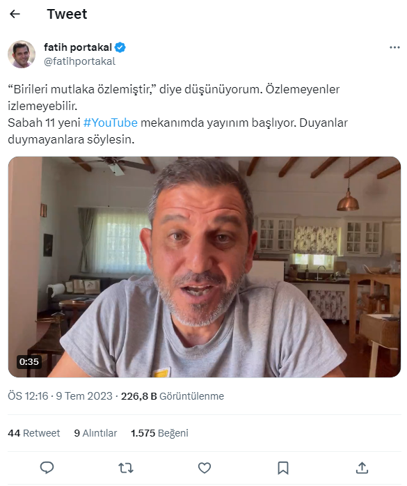 Twitter hesabından paylaşım yapan Portakal, "'Birileri mutlaka özlemiştir' diye düşünüyorum. Özlemeyenler izlemeyebilir. Sabah 11 yeni #YouTube mekanımda yayınım başlıyor. Duyanlar duymayanlara söylesin." başlığı ile yeni adresini duyurdu.