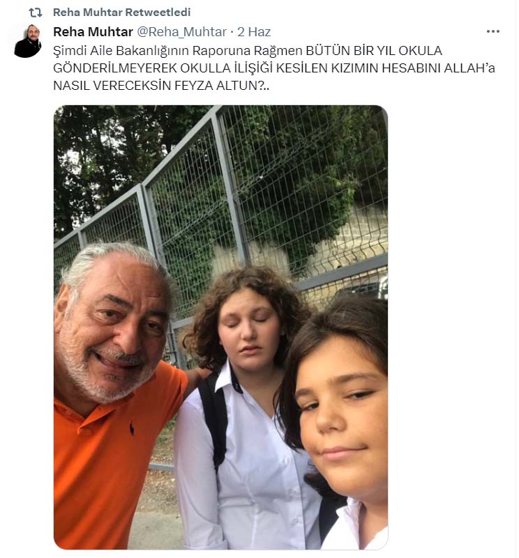 Öte yandan Muhtar, kendi sosyal medya hesabında Altun'a hitaben paylaşımlar yaptı. Muhtar önce, "Çocuklarım için" notuyla bir video paylaştı. Ardından çocuklarıyla ilgili daha önce attığı tweetleri tekrar paylaştı.