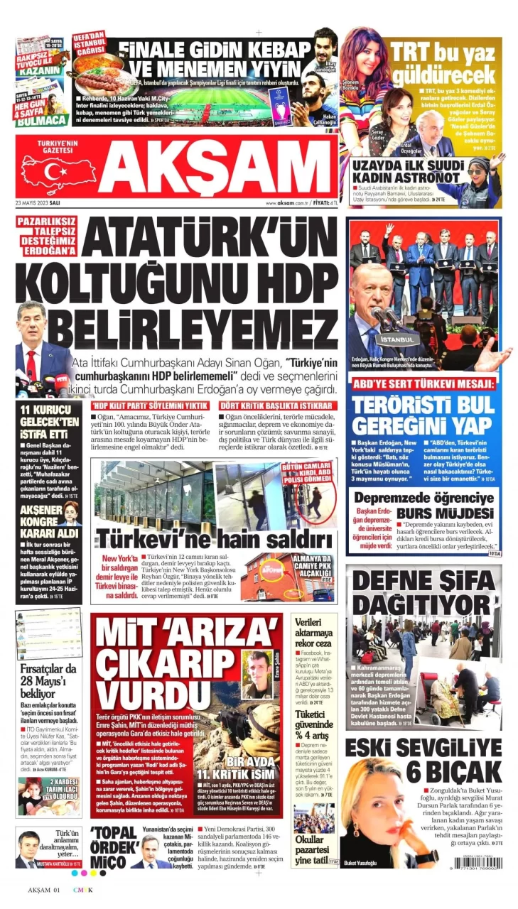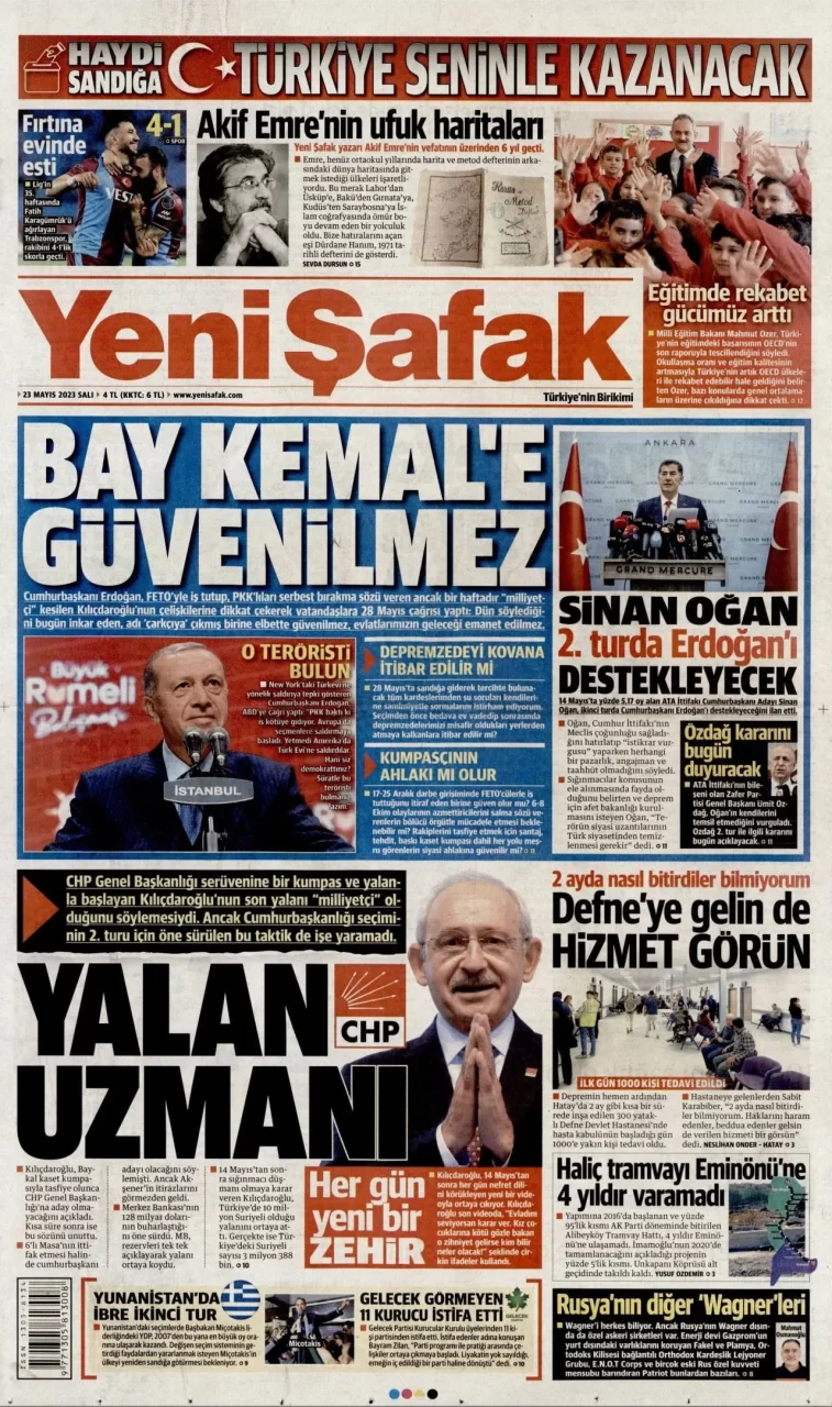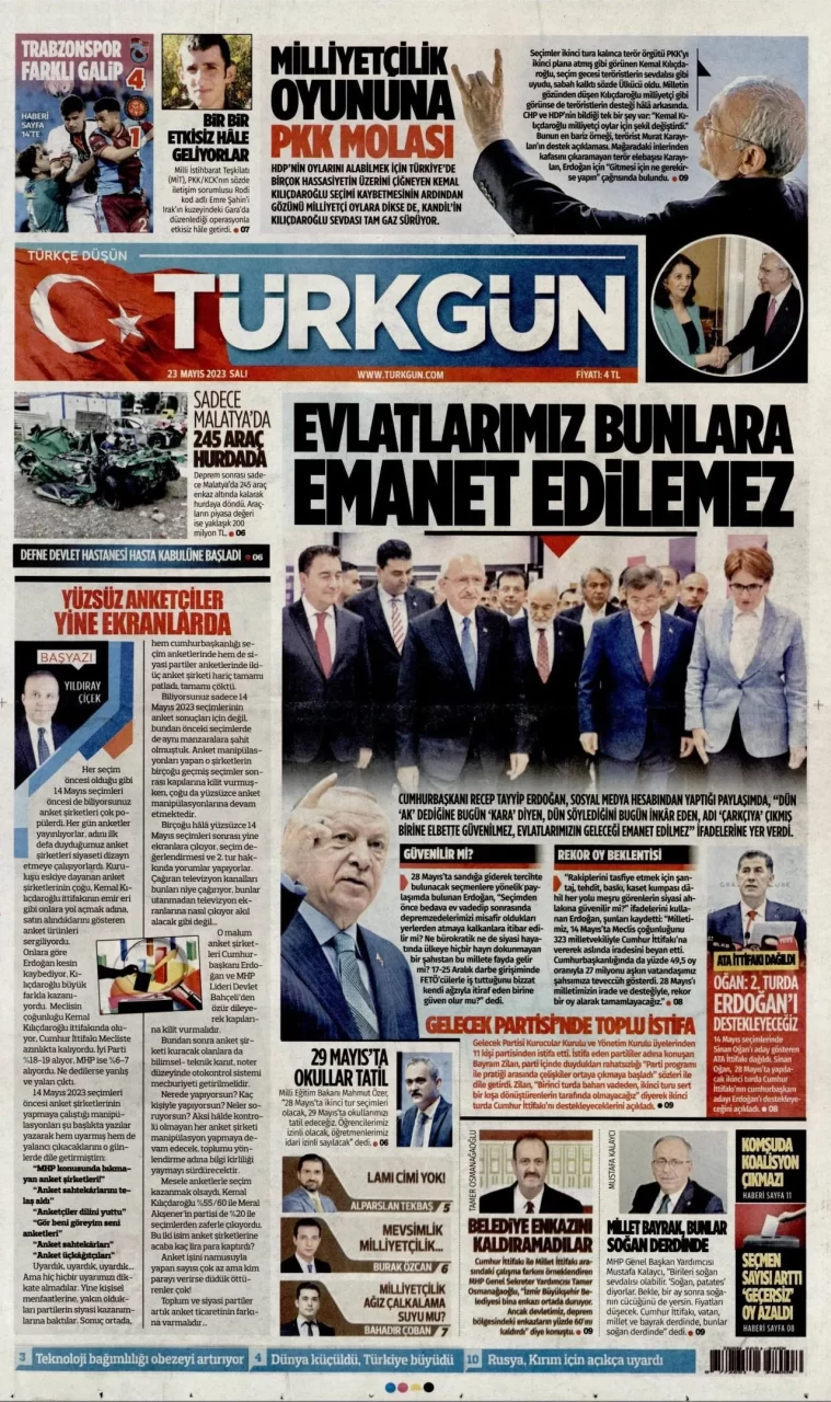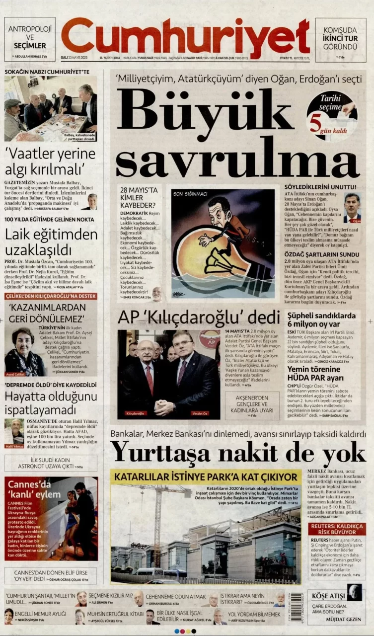 Ata İttifakı'nın cumhurbaşkanı adayı Sinan Oğan, dün ikinci turda Cumhurbaşkanı ve AKP Genel Başkanı Recep Tayyip Erdoğan'ı destekleyeceğini açıkladı. Oğan'ın açıklaması gazetelerin ilk sayfalarında yer aldı.Oğan'ın...