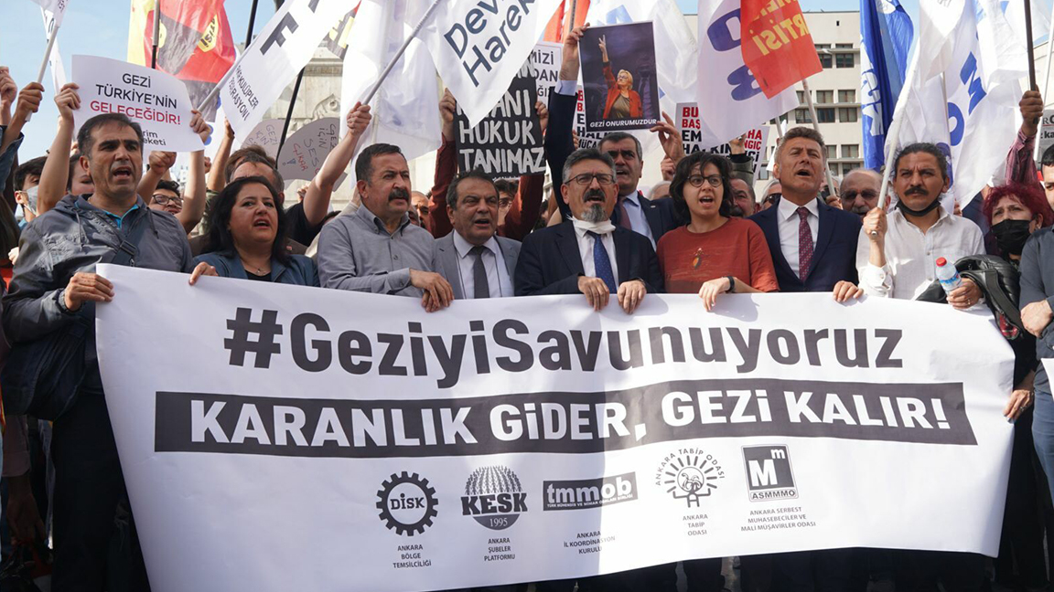 Sendikalar ve emek örgütleri, Ankara’da “Gezi Davası” kararlarına karşı ortak tepki gösterdi. DİSK, KESK, TMMOB, Ankara Tabip Odası, Ankara Serbest Muhasebeciler ve Mali Müşavirler Odası’nın yaptığı ortak açıklamada, “Arkadaşlarımızı asla yalnız bırakmayacağız. Gezi direnişini, bu ülkenin geleceğine sahip çıkan demokrasi ve özgürlük çığlığını susturamayacaksınız” denildi.