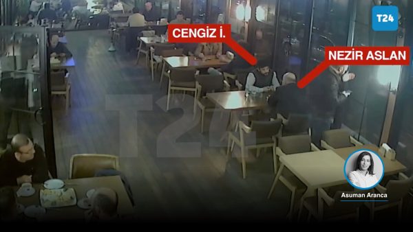 Görüntülerde, Nezir Aslan ve Cengiz İ’nin yaklaşık 2.5 saat boyunca görüşme yaptıkları, bu sırada masaya aralarında polislerin de olduğu iddia edilen bazı kişilerin gelip gittikleri görülüyor.