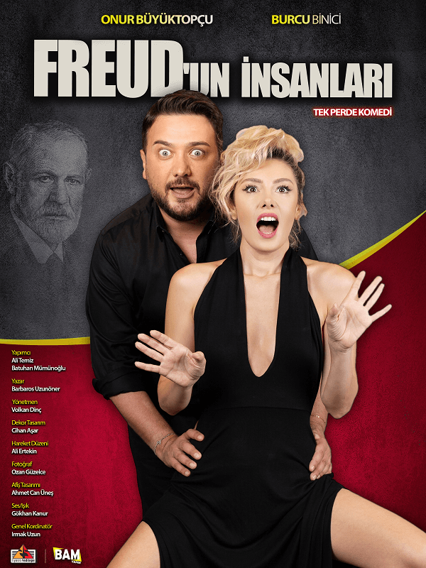 Sigmond Freud’un Psikoseksüel Gelişim Teorisi, Burcu Binici ve Onur Büyüktopçu’nun performansıyla espirili bir dille tiyatro sahnesine taşınıyor. Freud’un teorisine göre insan gelişimi çocukluk dönemi beş evreye ayrılıyor. Freud, bu evreleri sağlıklı tamamlayamayan bireylerin cinsel sorunlar yaşayabileceğini söylüyor.Tiyatro Yeditepe ve BAM Yapım prodüksiyonla sahnelenen Freud’un İnsanları oyununda psikoseksüel gelişimini tamamlayamamış insanların birbirleriyle ilişkileri, mizahi bir dille izleyiciye aktarılıyor. Mizahın gücü, bilimin ışığı ve cinselliğin ilgi çekiciliğinin bir arada yaşandığı 'Freud’un İnsanları' şehrinize geliyor...