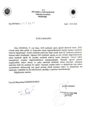 İstanbul Üniversitesi Onkoloji Enstitüsü de hazırladığı dilekçede, Odabaş'ın tedavi alması ve yakın onkolojik takibinin hayati önemde olduğunu vurguladı. Dilekçede, "Geçmişte yapılan tedavi ve takiplerinde tüm tedavi seçeneklerini etkileyeceği için genel prensip olarak hastanın tedavi ve takiplerinin tek merkezde (mümkünse ilk tedavilerinin yapıldığı yerde) yapılması gerekmektedir" denildi.