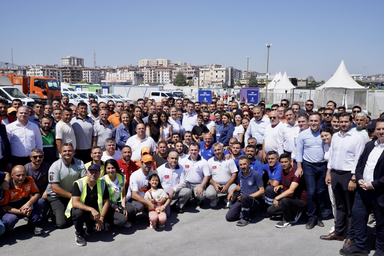 Çadır kentten İBB Antakya Afet Koordinasyon Merkezi’ne geçen İmamoğlu ve beraberindeki heyet, birlikte öğle yemeği yedikleri personelle bayramlaştı.