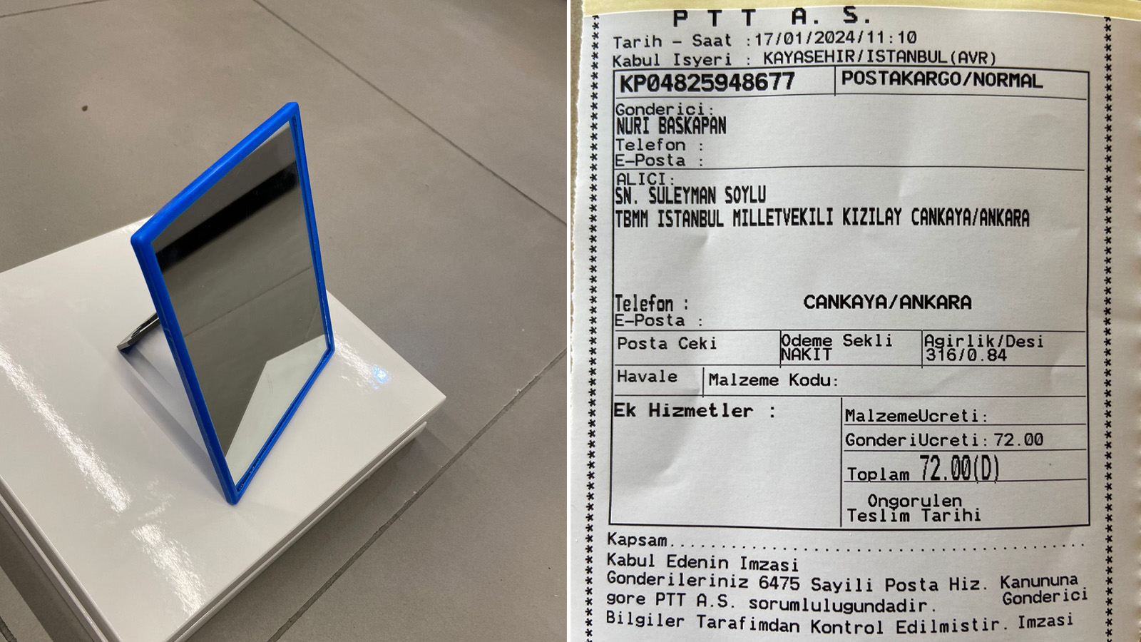 Eski İçişleri Bakanı ve AKP İstanbul Milletvekili Süleyman Soylu’nun, ‘terör iltisaklı’ olduğu iddiasıyla, “İstanbul Büyükşehir Belediyesi’nde 550 terörist var” sözleri sonrası soruşturmaya konu olan dava tutanağına tepkiler gelmeye devam ediyor. Bir İBB çalışanı olan Nuri Başkapan ise ''Soylu'ya bir İBB çalışanı olarak güzel bir ayna gönderiyorum. Ne arıyorsa o aynada bulacaktır. Bol bol bakmasını diliyorum'' diyerek 'ayna' hediye etti.