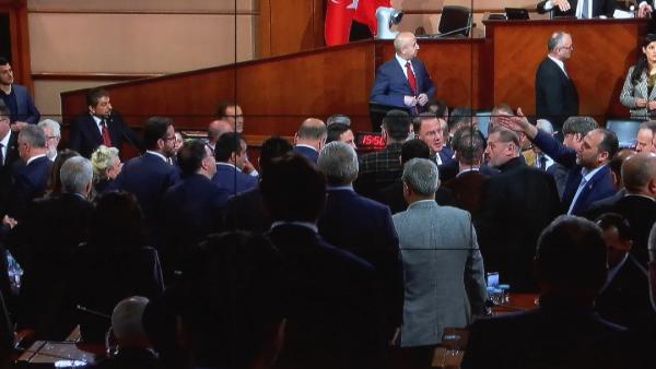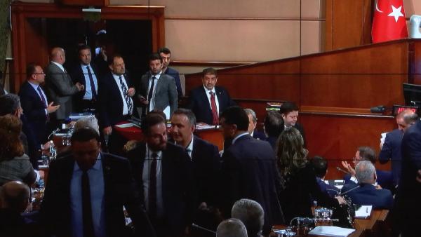 İstanbul Büyükşehir Belediyesi (İBB) Meclisi'nin nisan ayı toplantısında Tevfik Göksu konuşurken CHP'liler araya girdi, meclis üyeleri birbirinin üzerine yürüdü.