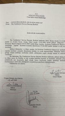 Cihaner, rüşvetin AKP'li eski Adalet Bakanı Mehmet Ali Şahin’in avukat oğluna kadar uzandığını 2009’da Adalet Bakanlığı kayıtlarına geçirmişti.