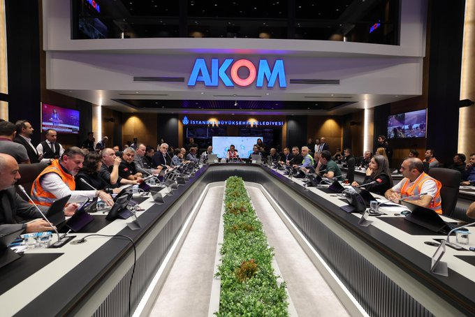 İstanbul Büyükşehir Belediye (İBB) Başkanı Ekrem İmamoğlu, Afet Koordinasyon Merkezi'nde (AKOM), İstanbul'da etkili olan yağışlarla ilgili açıklama yapıyor.