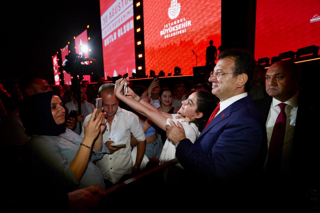 İmamoğlu’nun konuşmasının ardından 30 Ağustos Zafer Bayramı anısına yapılan kısa film gösterildi. Ses, görüntü ve ışık gösterisiyle renklenen kutlamadaki coşku, Gülşen konseriyle doruğa ulaştı.