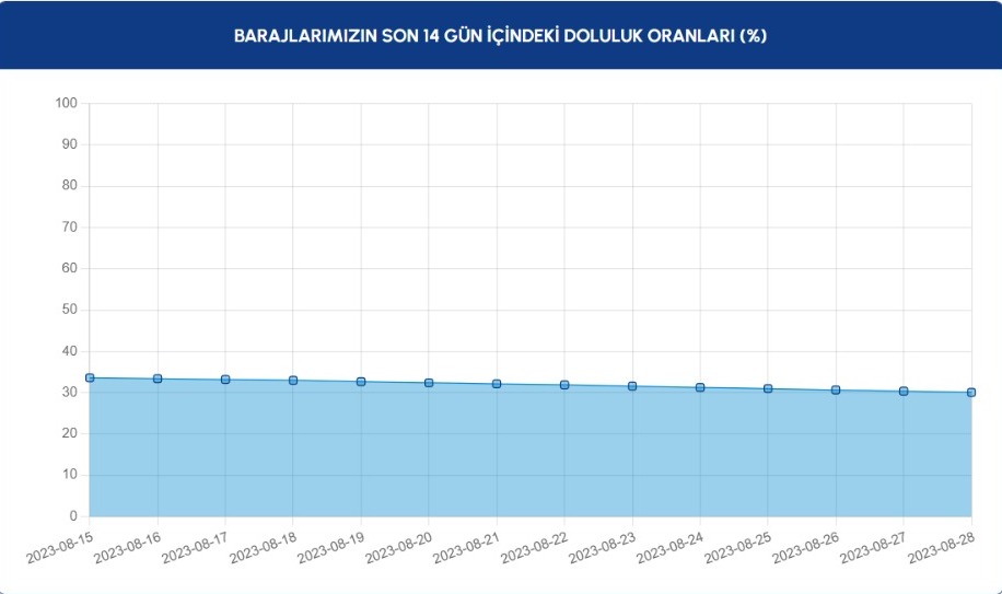 İstanbul Su ve Kanalizasyon İdaresi (İSKİ) baraj doluluk oranlarını güncel olarak paylaşıyor. Verilere göre şehirdeki barajların genel doluluk oranı son 9 yılın en düşük seviyesine gerileyerek yüzde 30.06 oldu.
