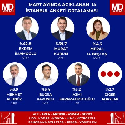 MD Raporlar, mart ayında açıklanan 14 İstanbul anketinin ortalamasını yayınlandı.