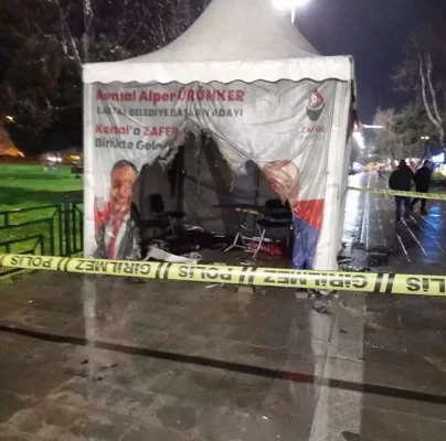 Olay, Salı günü saat 22.45 sıralarında Kordonboyu Mahallesi, Rıhtım Caddesi üzerinde meydana geldi. İddiaya göre, caddede kurulu olan bir partinin seçim çadırı yandı. İhbar üzerine olay yerine itfaiye ve polis ekipleri sevk edildi.