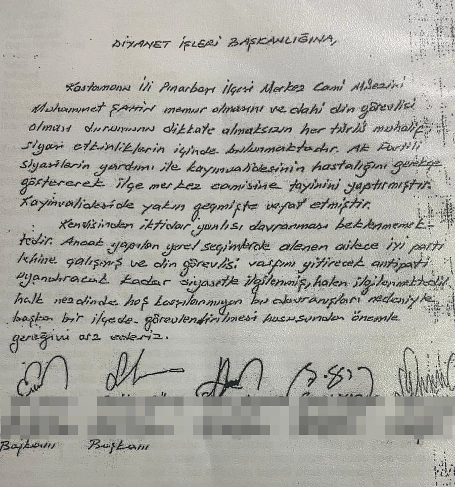 Kastamonu Pınarbaşı ilçesinde kısa süre önce emekli olan Muhammed Şahin isimli bir imam evinin bodrum katında intihar etti. İmamın intiharının, uğradığı baskılarla ilgili olduğu iddia edilirken ilçe Belediye Başkanı'ndan açıklama geldi. İmamın ailesi ise Şahin'e yapılan baskının belgesini paylaştı.