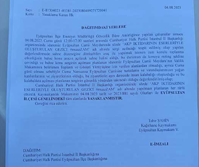 Eyüpsultan Kaymakamlığı’nın ilgili kararı: