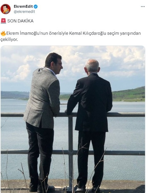 “Evet, ikinci tura katılmama yönünde bir kararım oldu. Divan Başkanı olan Ekrem İmamoğlu ile bu konuyu bir odada görüştük. ‘Özgür Beyi de çağırsın, ben elini de kaldırayım' dedim. Fakat daha genel kurul salonuna gitmeden @ekremedit diye bir twitter hesabı var galiba. O hesapta farklı bir dille sanki bunu bir talimatla yapıyormuşum gibi tweet atıldı. Bu tweet hesabının Ekrem Beye yakın olduğu söylendi.