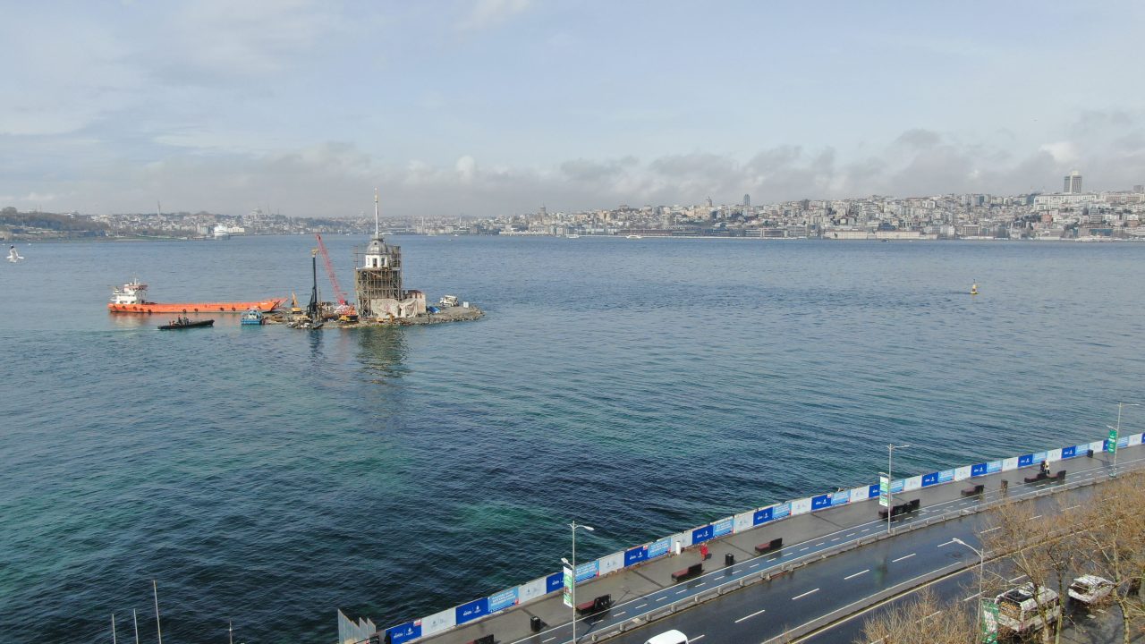İstanbul'un 2 bin 500 yıllık tarihe sahip simgelerinden Kız Kulesi'nin restorasyonunda sona yaklaşıldı. Kız Kulesi'nde iskelenin üst kısmının sökülmesiyle kubbe katı ortaya çıktı. Kız Kulesi'nin restorasyon çalışmalarının mayıs ayı başında bitmesi bekleniyor.
