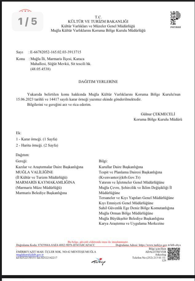 28.8.2023 tarihinde Marmaris Belediyesi'nin verdiği ruhsatı göstererek "benim ruhsatım var. Arkeolojik alanı dikkate alan yeni bir proje çizdirerek bu ruhsatı aldıklarını" ifade ediyor.